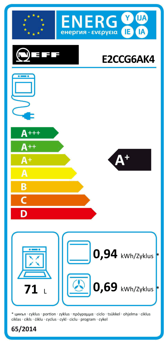 Der Constructa Eco-Line Einbauherd mit Backwagen, 7 Heizarten, leicht zu reinigenden versenkbaren Drehwählern und hydrolytischer Reinigung in der sehr sparsamen Energieeffizienzklasse A+ ist made in Europe.