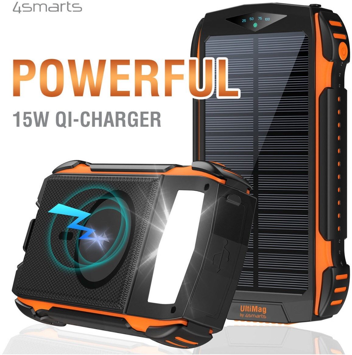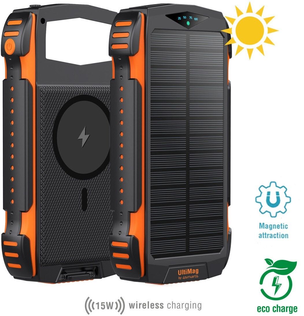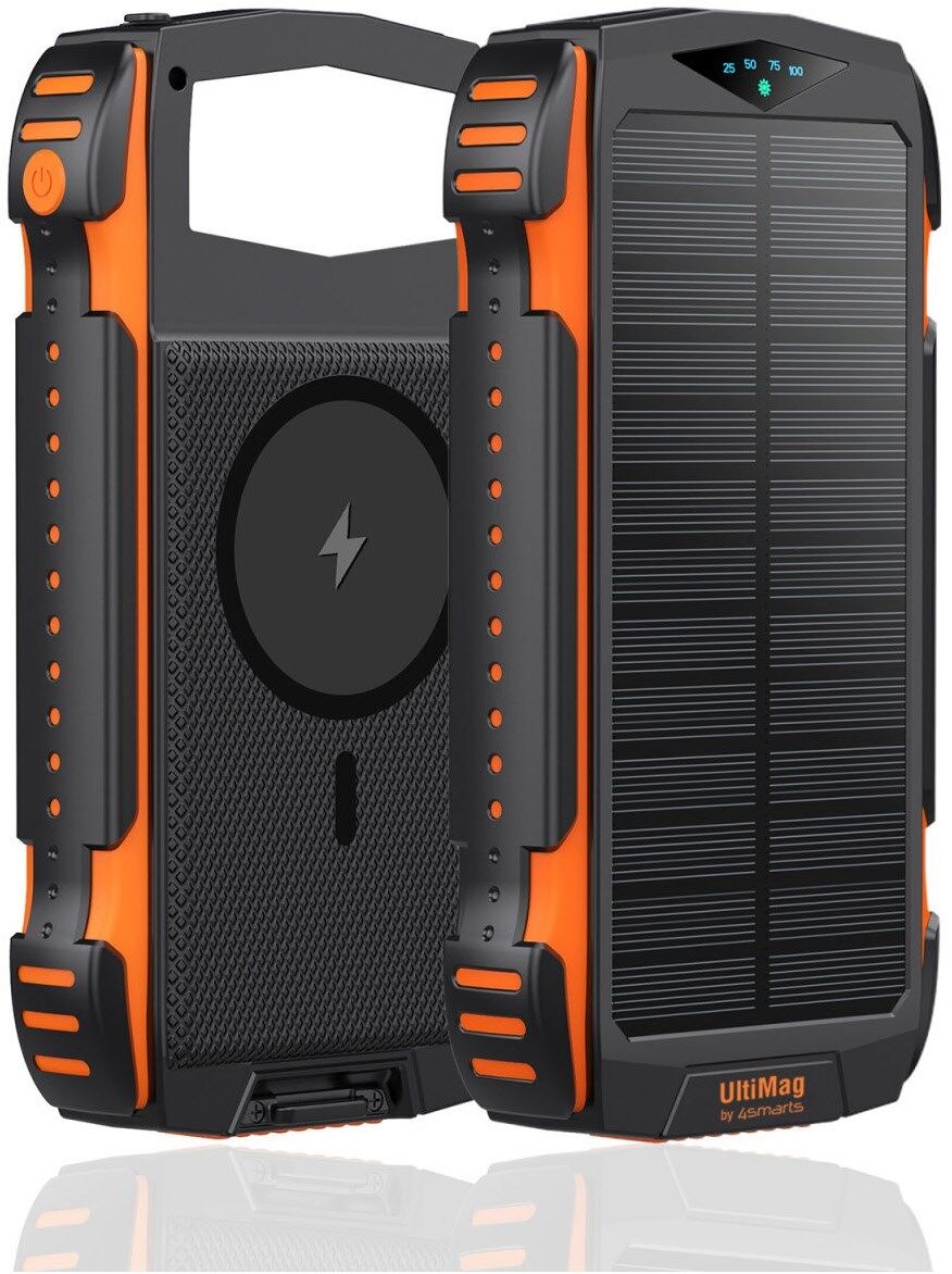 Das Solar Powerbank Rugged TitanPack UltiMag 20000 mAh, lädt die Geräte mit grüner, umweltfreundlicher Solarenergie auf. Ein Qi-Ladegerät mit 15 W und zudem auch sehr robust durch ein solides Gehäuse was es vor Staub, Stößen und Wasser schützt. Die eingebauten UltiMag Magnete richten das MagSafe kompatibles Handy perfekt für das Wireless-Laden aus – und halten dein Gerät in der optimalen Position für den effektivsten Ladevorgang.