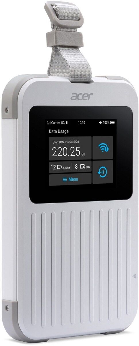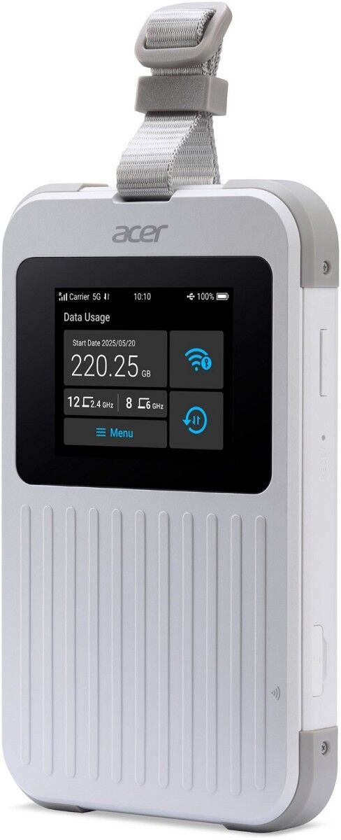 Erleben Sie überall und jederzeit ultraschnelle 5G-Konnektivität und teilen Sie Ihre Verbindungen mit Ihren Freunden, Ihrer Familie oder Ihren Kollegen. Das robuste Acer Connect M6E 5G Mobile WiFi unterstützt bis zu 20 Verbindungen gleichzeitig und bietet bis zu 28 Stunden ununterbrochene Highspeed-Internetverbindung.