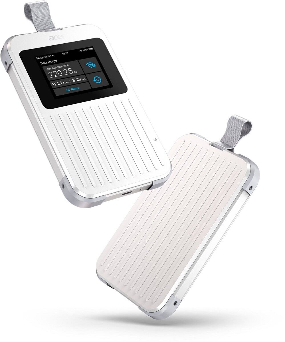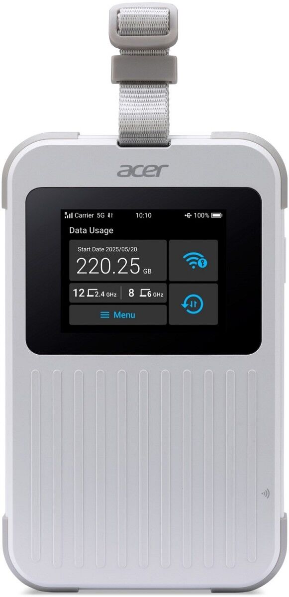 Erleben Sie überall und jederzeit ultraschnelle 5G-Konnektivität und teilen Sie Ihre Verbindungen mit Ihren Freunden, Ihrer Familie oder Ihren Kollegen. Das robuste Acer Connect M6E 5G Mobile WiFi unterstützt bis zu 20 Verbindungen gleichzeitig und bietet bis zu 28 Stunden ununterbrochene Highspeed-Internetverbindung.