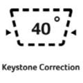 Trapez-Korrektur (Keystone) +/- 40° (vertikal) manuell & automatisch, +/- 40° (horizontal) manuell, 4-Ecken