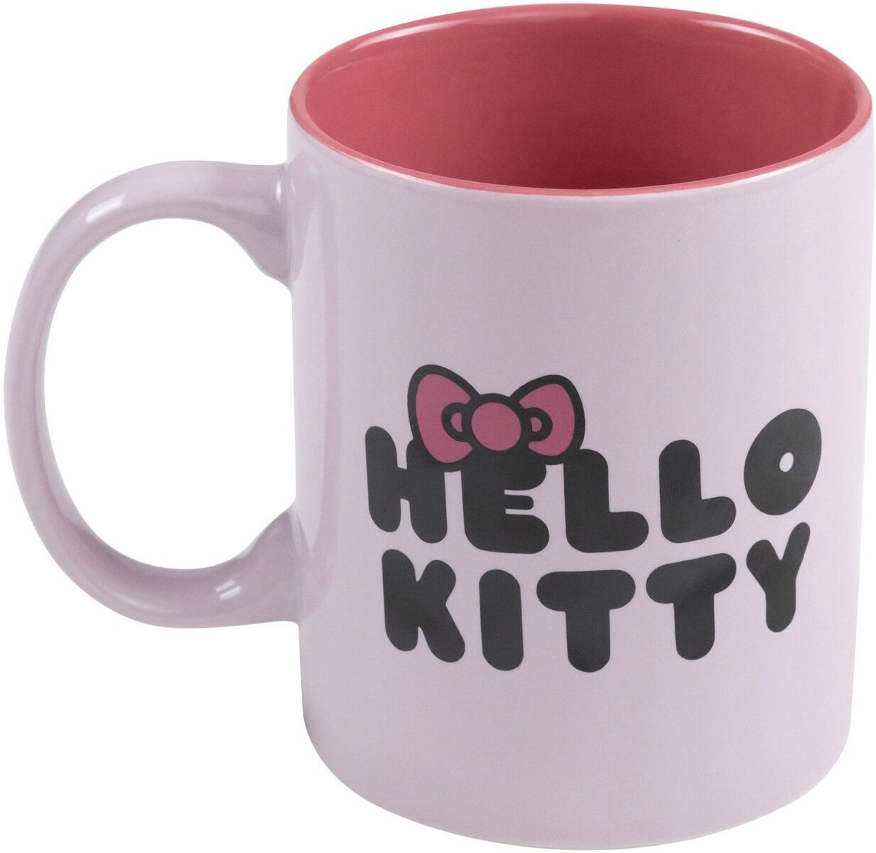 Außen präsentiert sich die Tasse in zartem Hellrosa, verziert mit dem freundlichen Gesicht von Hello Kitty sowie einem schwarzen „Hallo Kitty“-Schriftzug