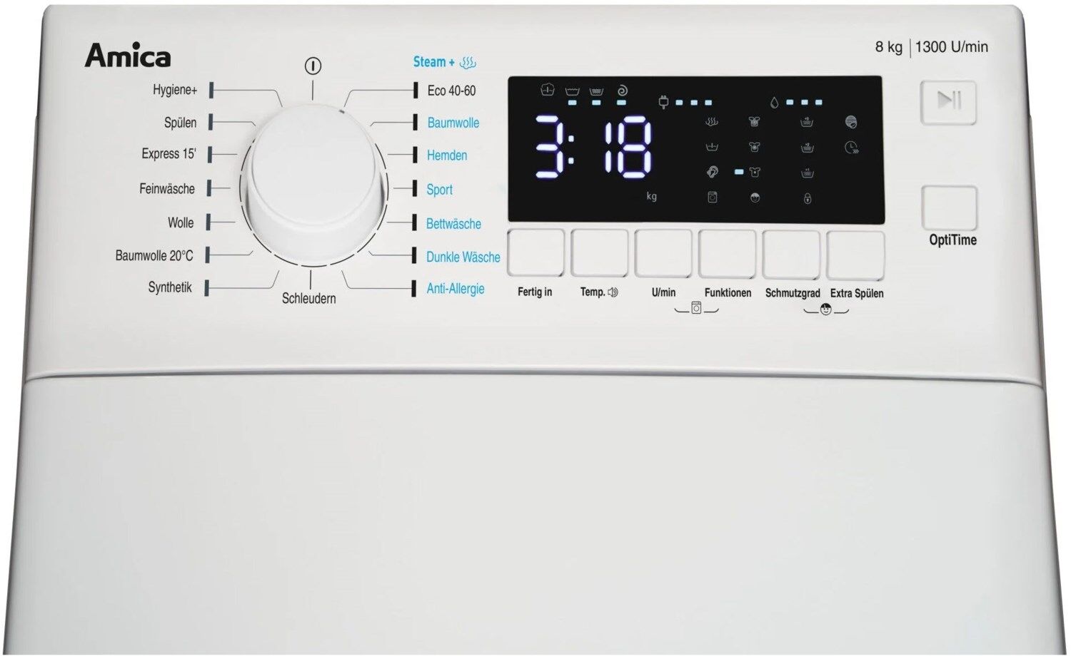 Auswahl Verschmutzungsgrad, Nachtwaschprogramm, Selbstreinigung inkl. Erinnerungsfunktion