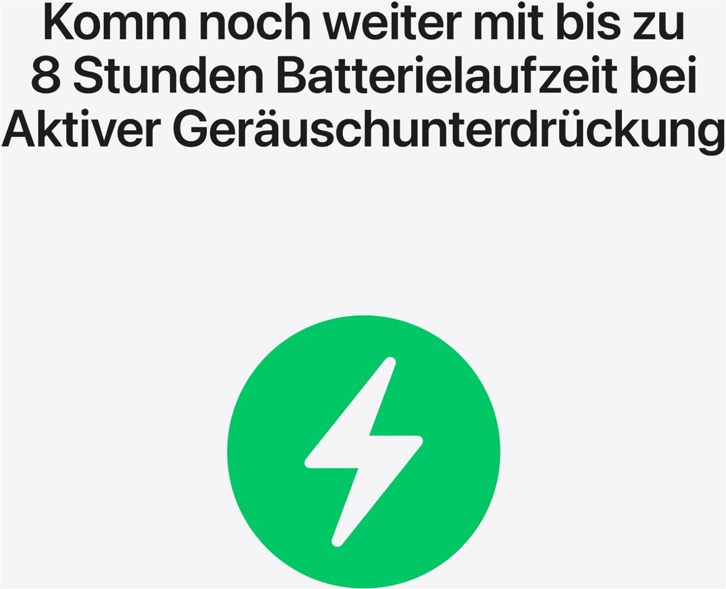 ⁶ Die Tests wurden von Apple im Juli und August 2025 durchgeführt mit Prototypen von AirPods Pro 3 mit MagSafe Ladecase, die mit Prototypen von iPhone 17 Pro Geräten verbunden waren; alle mit Software-Prototypen. Sowohl Lautstärke als auch Verstärkungsgrad waren auf 50 % eingestellt und Transparenz war aktiviert. Bei den Tests wurde die Batterie der AirPods Pro komplett mit aktivierter Hörgerätfunktion und ohne Audiowiedergabe von einem iPhone entladen, bis der erste AirPod Pro vollständig entladen war. Die Batterielaufzeit hängt von den Geräte-Einstellungen, der Umgebung, der Verwendung und vielen weiteren Faktoren ab.