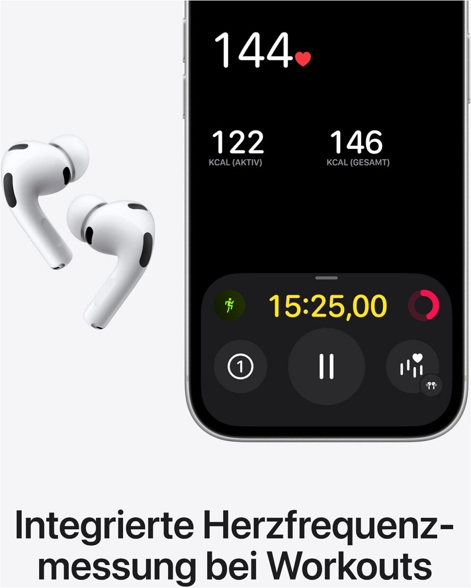 AirPods Pro 3. Bis zu 2x bessere Aktive Geräuschunterdrückung als bei den AirPods Pro 2.¹ Jetzt mit Herzfrequenzmessung², längerer Batterielaufzeit³ und Neuheiten für die Hörgesundheit⁴. Neu designt für noch bessere Passform.³