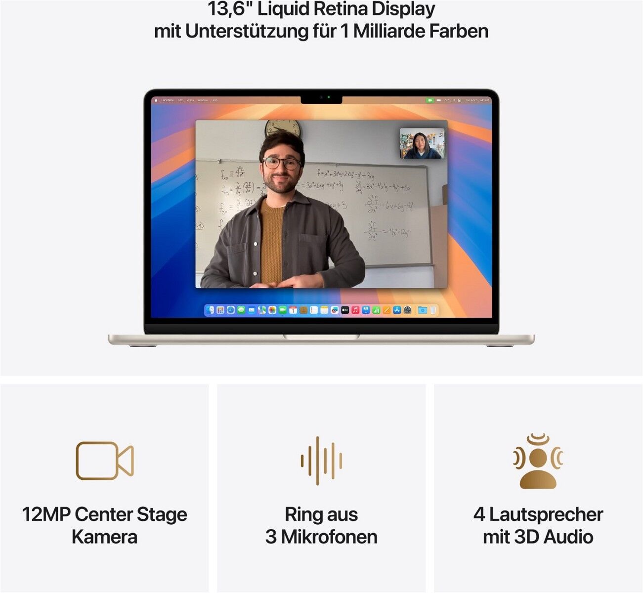 EIN BRILLANTES DISPLAY - Das 13,6" Liquid Retina Display unterstützt eine Milliarde Farben.³ Fotos und Videos erscheinen mit einem beeindruckend hohen Kontrast und klaren Details, Text ist gestochen scharf