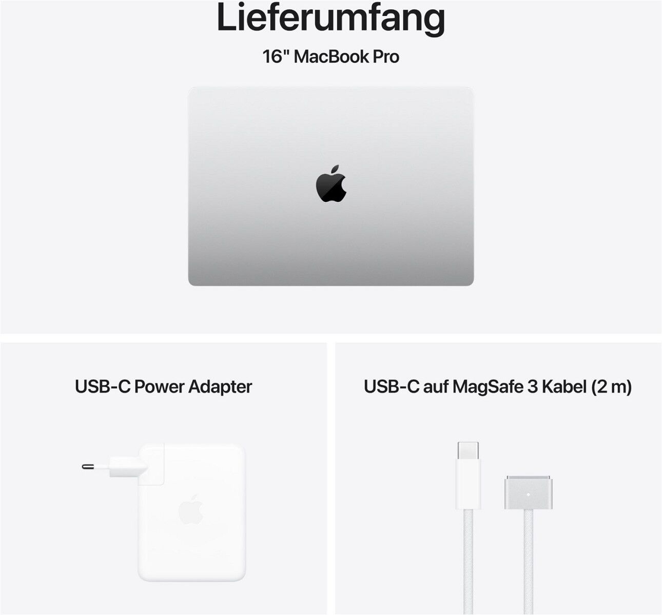 Display: Die Displaygröße wird diagonal gemessen. Die Displays des 14" und des 16" MacBook Pro haben oben gerundete Ecken. Als Standard-Rechteck gemessen haben die Displays eine Diagonale von 14,2" (35,97 cm) und 16,2" (41,05 cm). Der tatsächlich sichtbare Displaybereich ist kleiner.