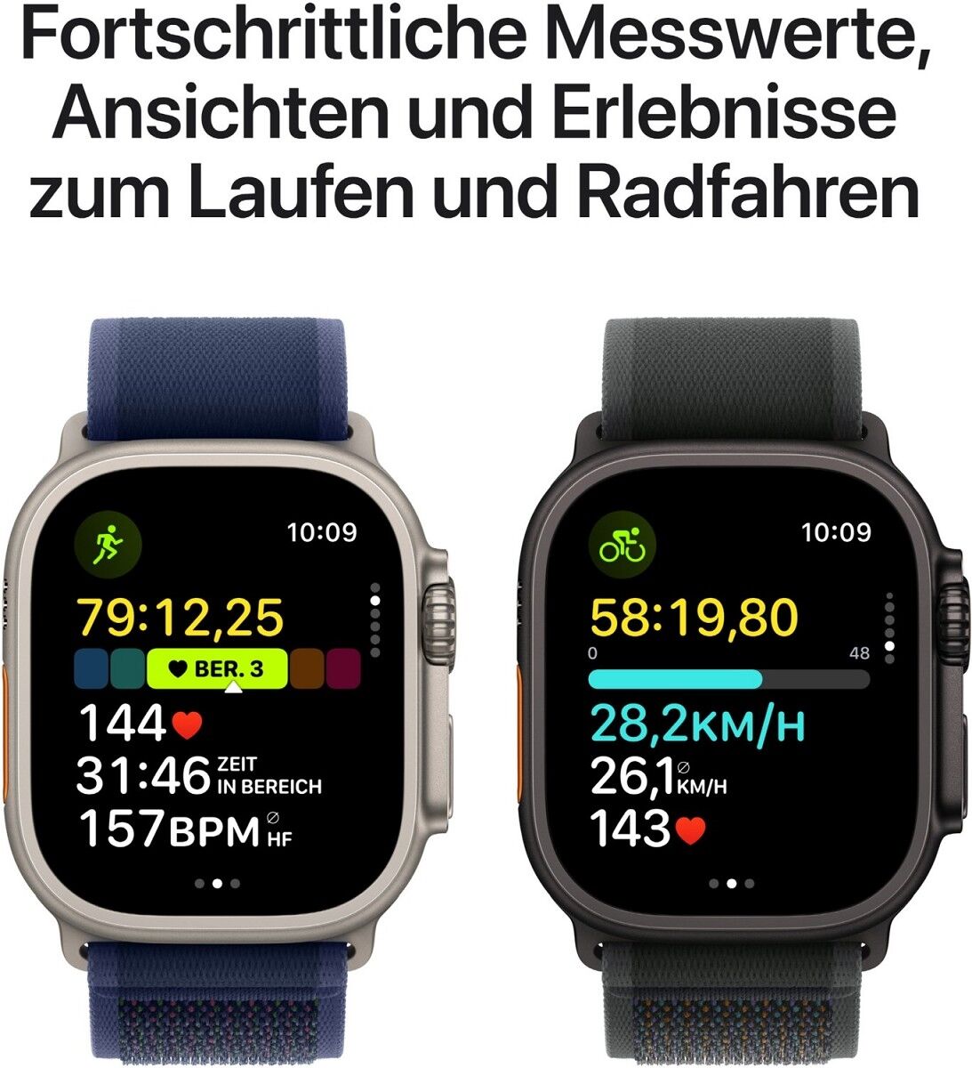 Änderungen an der Verfügbarkeit der Armbänder vorbehalten. Die Apple Watch Ultra 2 erfordert ein iPhone XS oder neuer mit iOS 18 oder neuer. Für Mobilfunkdienste ist ein Mobilfunktarif erforderlich. Weitere Infos gibt es beim jeweiligen Mobilfunkanbieter. Die Verbindung kann abhängig von der Netzwerk-Verfügbarkeit variieren. Informationen über teilnehmende Mobilfunkanbieter und die Verfügbarkeit gibt es unter apple.com/de/watch/cellular. Zusätzliche Anleitungen zum Einrichten findest du unter support.apple.com/de-de/HT207578.