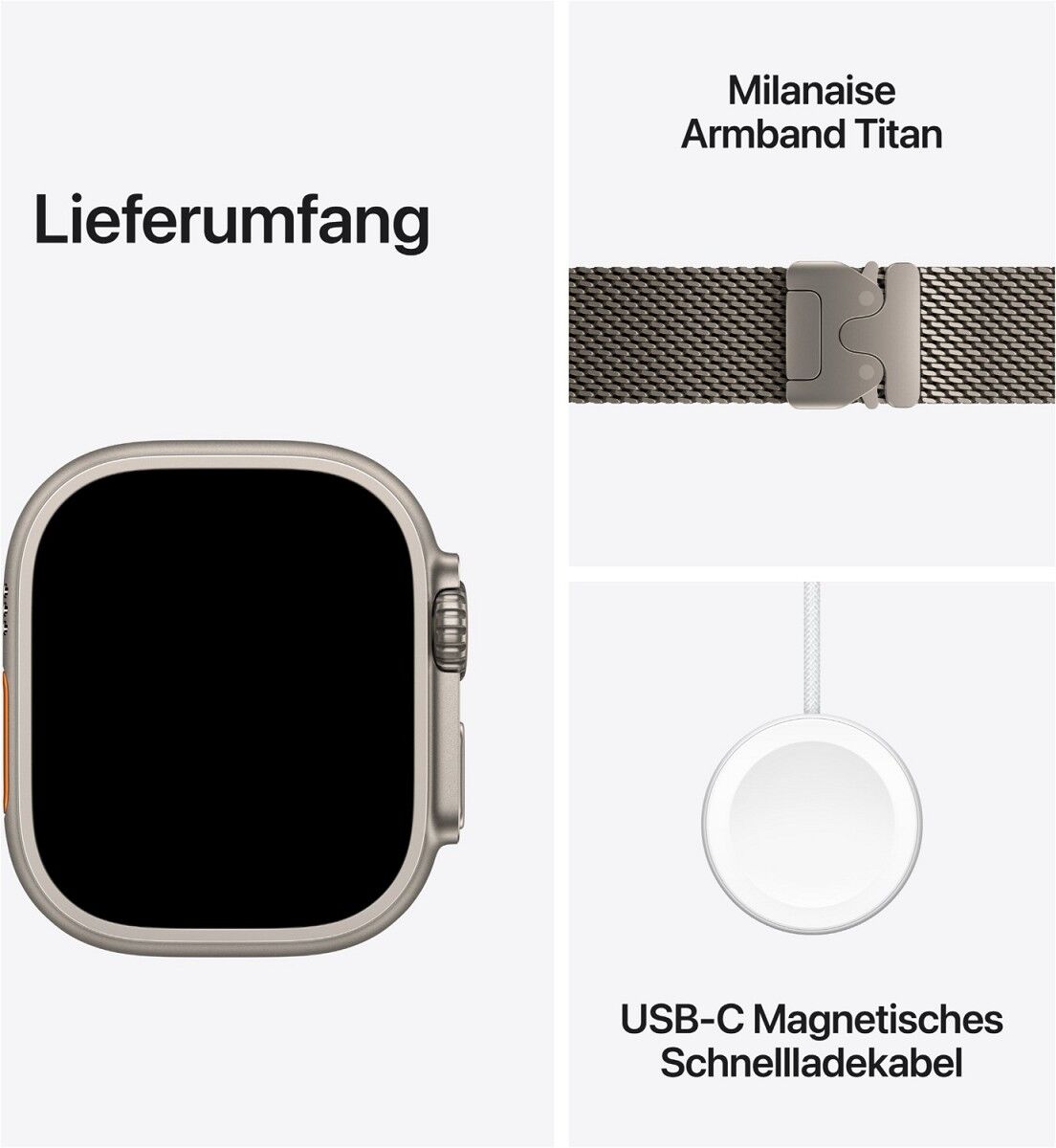³ Wenn das Display vom Sichtfeld weggeneigt ist, verglichen mit der Apple Watch Ultra oder Apple Watch Ultra 2.