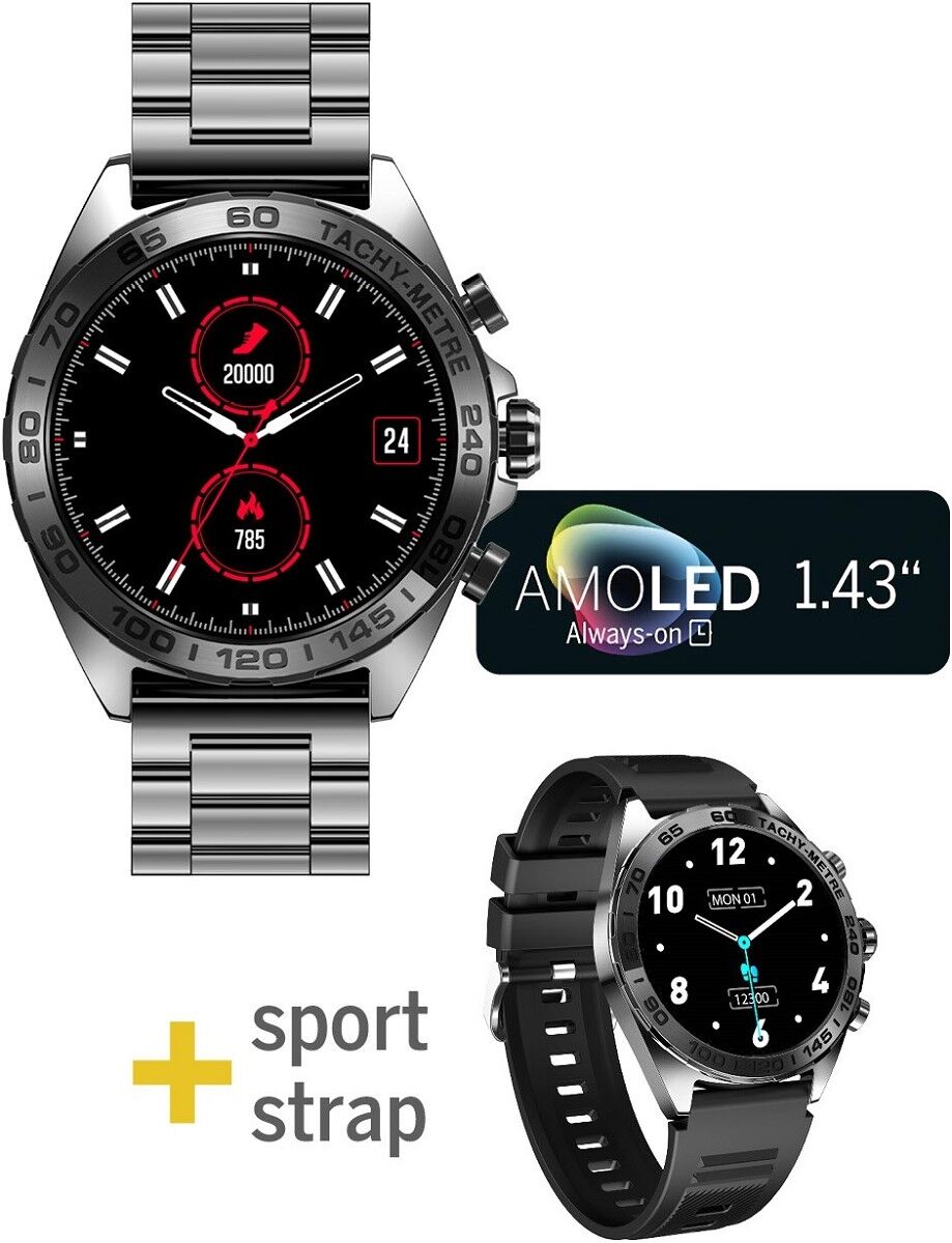 Mit einer Vielzahl von Funktionen und Apps und der herausragenden Qualität des AMOLED-Displays hast du deinen Erfolg immer an der Hand. 501 – unsere Premium Herren-Smartwatch mit mattschwarzem Metallgehäuse und Edelstahlband