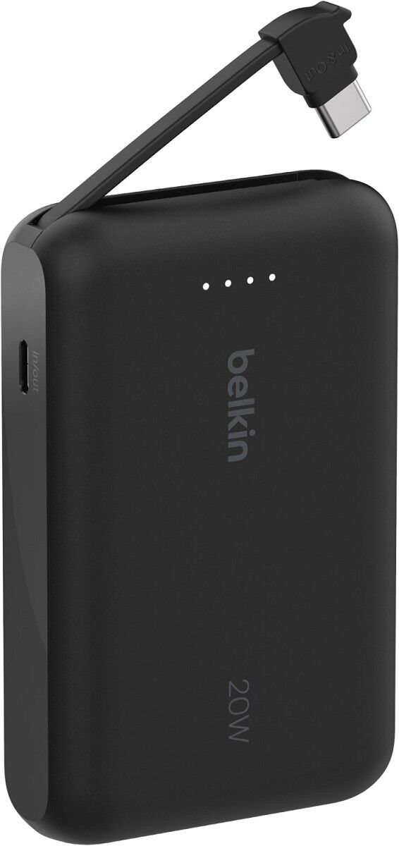 Laden Sie Geräte mit dieser leichten 10K-Powerbank§ mit bis zu 20 W auf. Da das USB-C®-Kabel integriert ist, können Sie unterwegs bequem laden, ohne ein zusätzliches Kabel mitnehmen zu müssen. Dank des USB-C-Anschlusses kann gleichzeitig ein zweites Gerät aufgeladen werden.