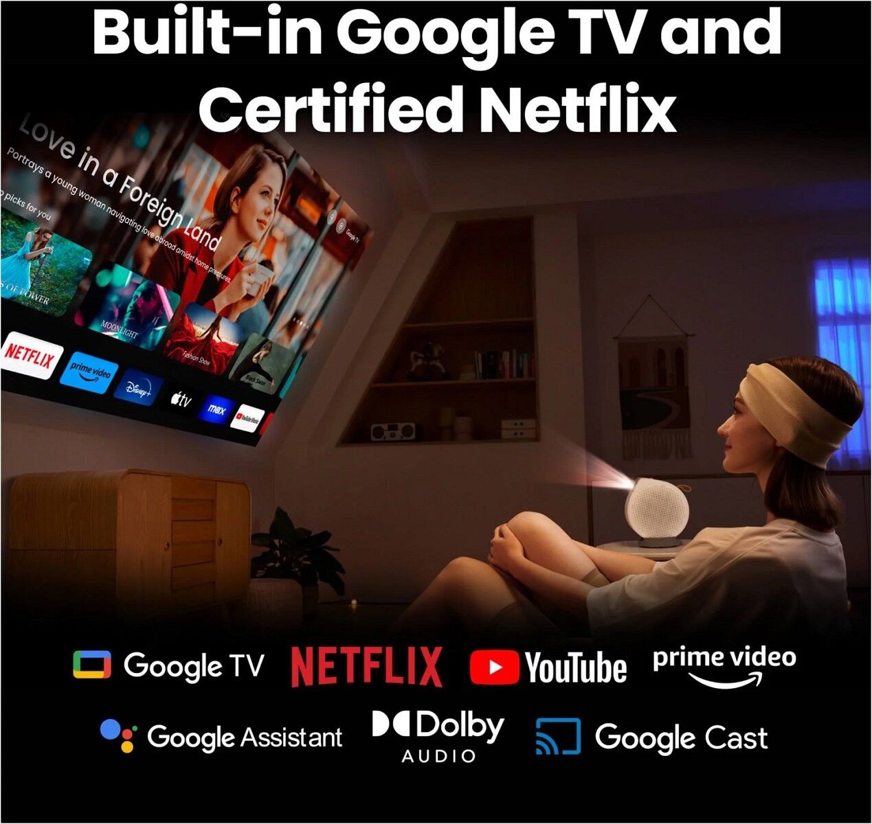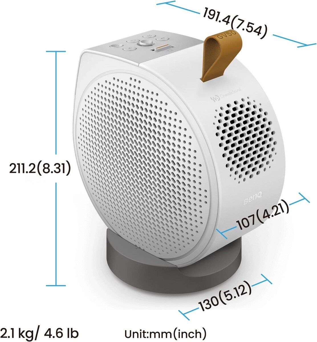 Der flexible Sockel des GV50, der an ein integriertes Stativ erinnert, ist ideal für die Projektion an der Zimmerdecke, während du gemütlich im Bett liegst. Er ermöglicht es dir, aus jedem gewünschten Winkel zu projizieren und dabei maximalen Komfort zu genießen.