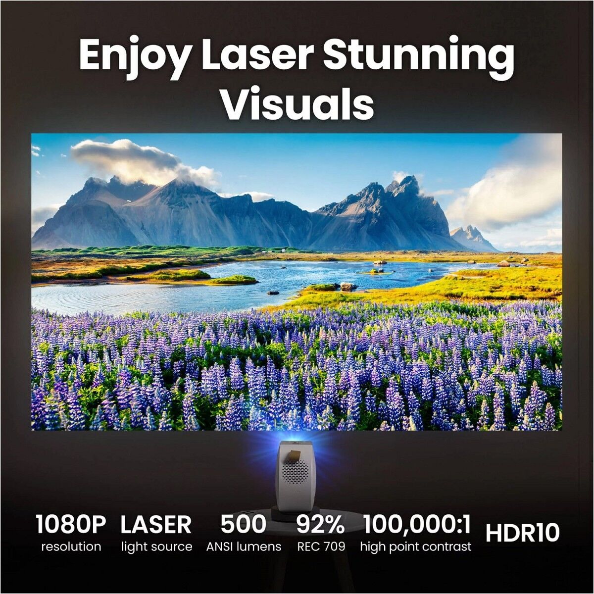 Erlebe lebendige, realistische Bilder mit der Laserlichtquelle des GV50, die eine Helligkeit von 500 ANSI-Lumen bietet und mit BenQs exklusiver CinematicColor-Technologie für HDR10- und HLG-Inhalte optimiert ist.