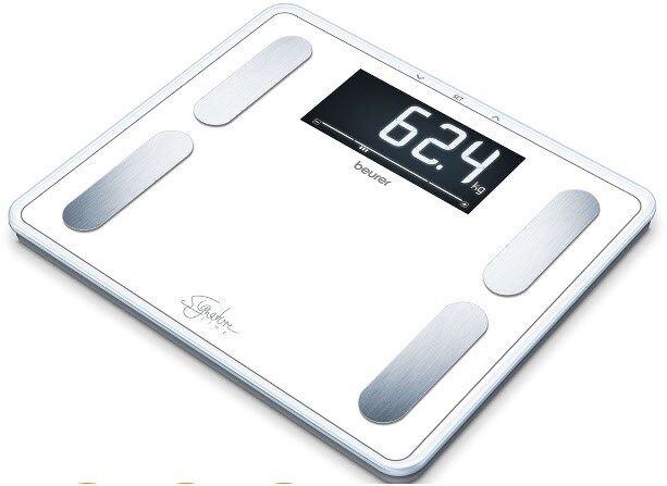 Ermittlung von Körpergewicht, -fett, -wasser, Muskelanteil, Knochenmasse und Kalorienanzeige, AMR/BMR und BMI