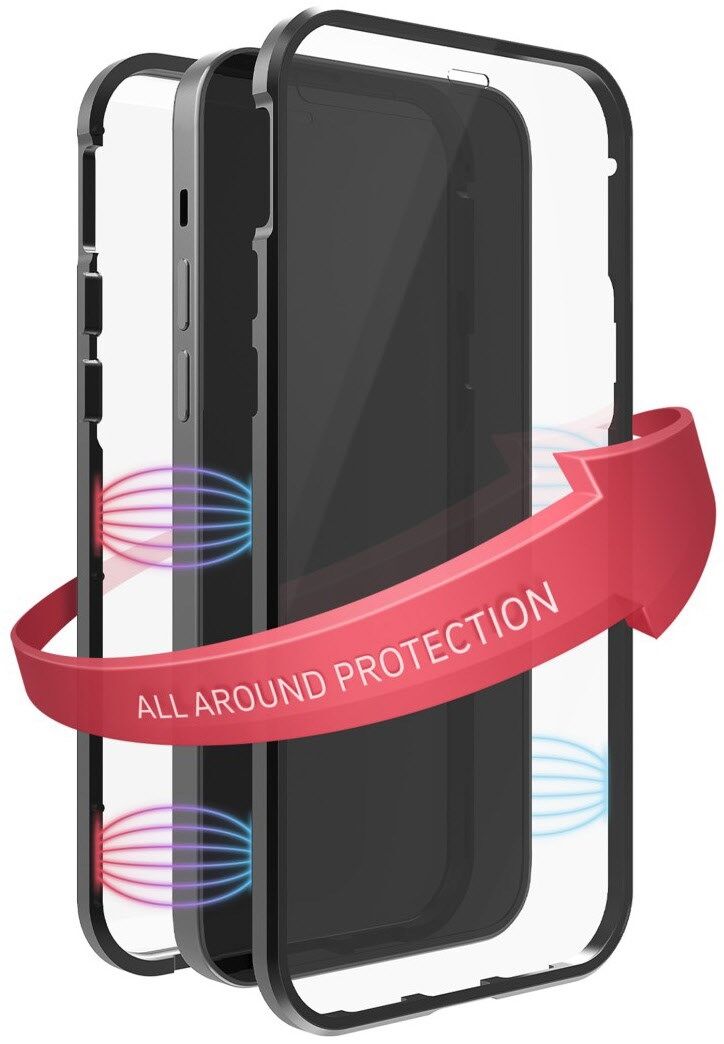Hama 360° Glass. Etui-Typ: Cover, Markenkompatibilität: Apple, Kompatibilität: iPhone 13, Maximale Bildschirmgröße: 15,5 cm (6.1 Zoll), Oberflächenfärbung: Einfarbig, Produktfarbe: Schwarz, Transparent