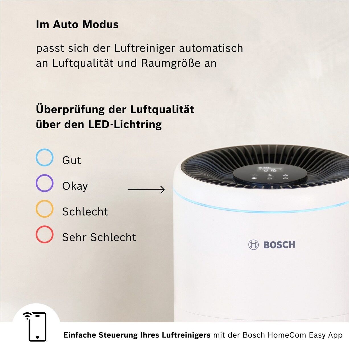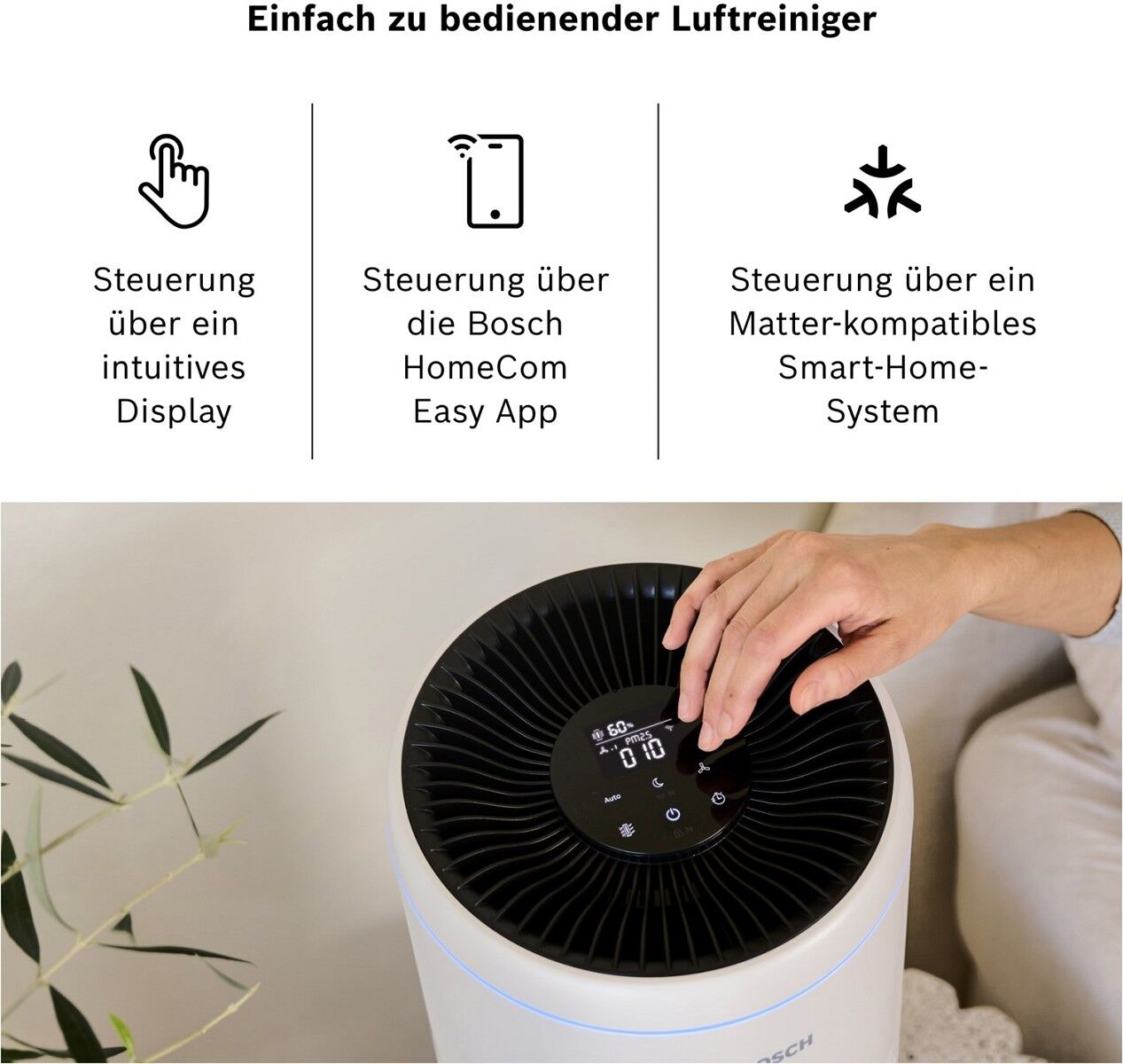 Die intuitive Bosch HomeCom Easy App ermöglicht die vollständige Steuerung Ihres vernetzten Luftreinigers, einschließlich folgender Funktionen: