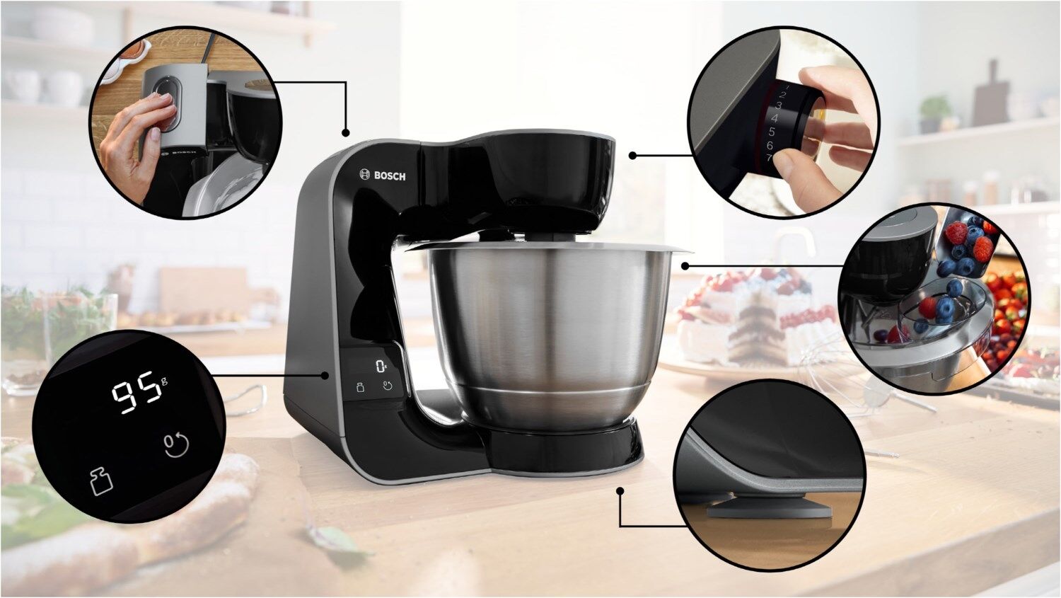 Integrierte Waage: alle Zutaten können direkt in der Schüssel oder im Zubehör gewogen werden.