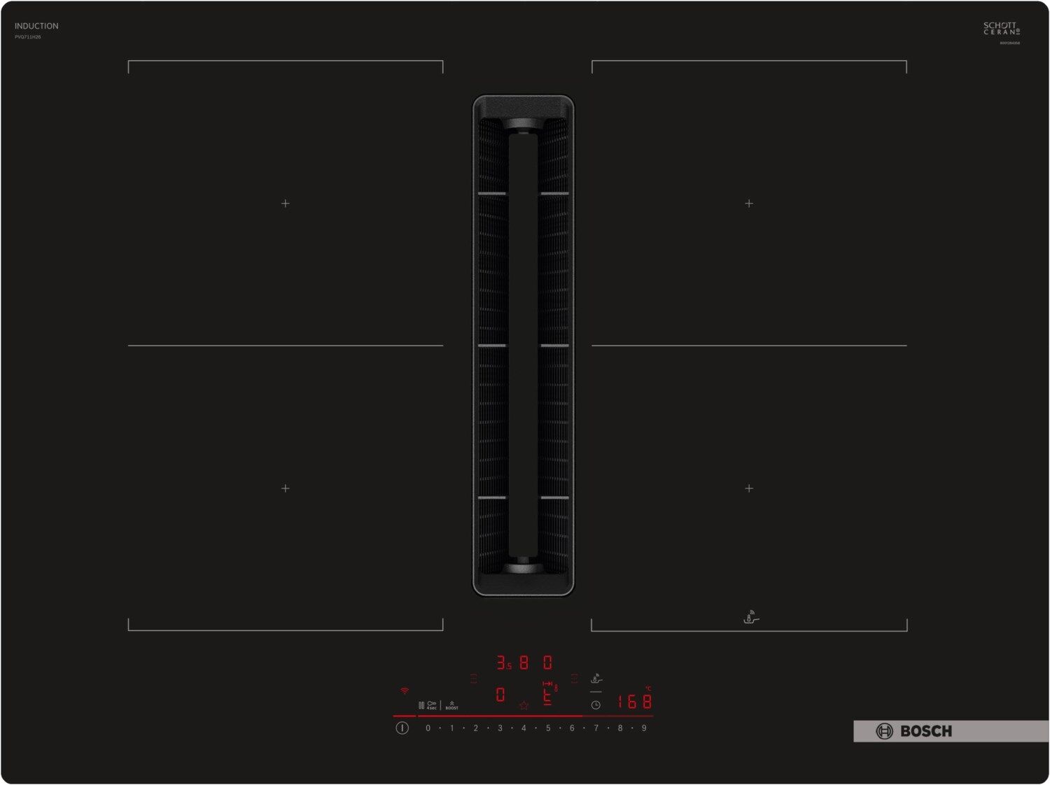 Das Induktions-Kochfeld mit integriertem Abzugsmodul: kombiniert Induktions- mit Dunstabzugshaubentechnologie für beste Ergebnisse.