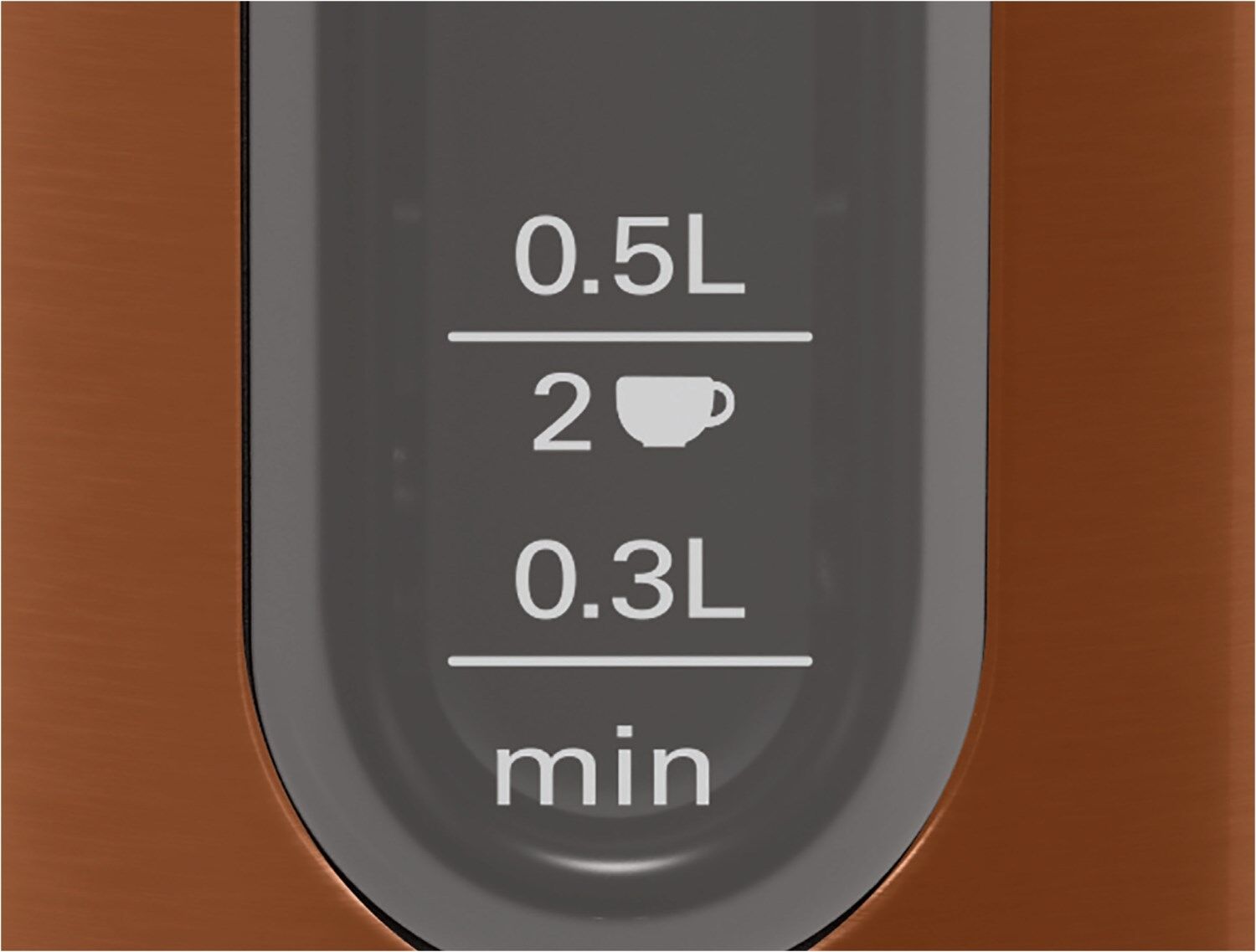 Tassenanzeige: hilft Ihnen, Energie und Zeit zu sparen, indem Sie nur die benötigte Menge kochen.