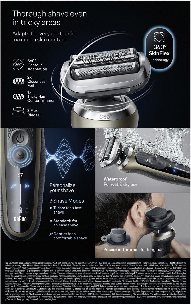 Gründlicher und schneller: Braun's Series 7 Elektrorasierer bietet eine gründlichere und schnellere Rasur als je zuvor und ist dabei sanft zur Haut (vs. S7 Vorgängermodell)
