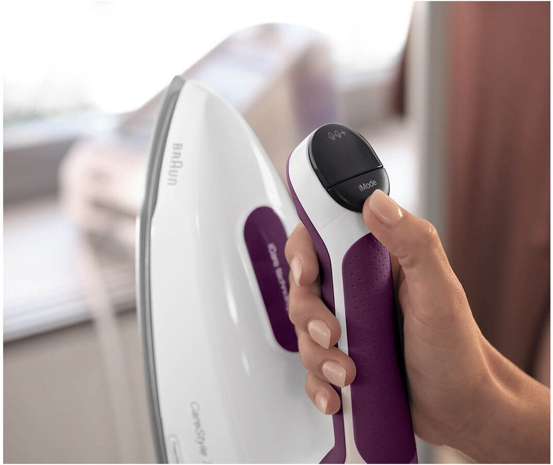 Das ergonomische, offene Griffdesign reduziert die Belastung des Handgelenks, da es anhand der natürliche Position des Handgelenks ausgerichtet ist und sorgt für maximalen Komfort und ein müheloses Bügeln.