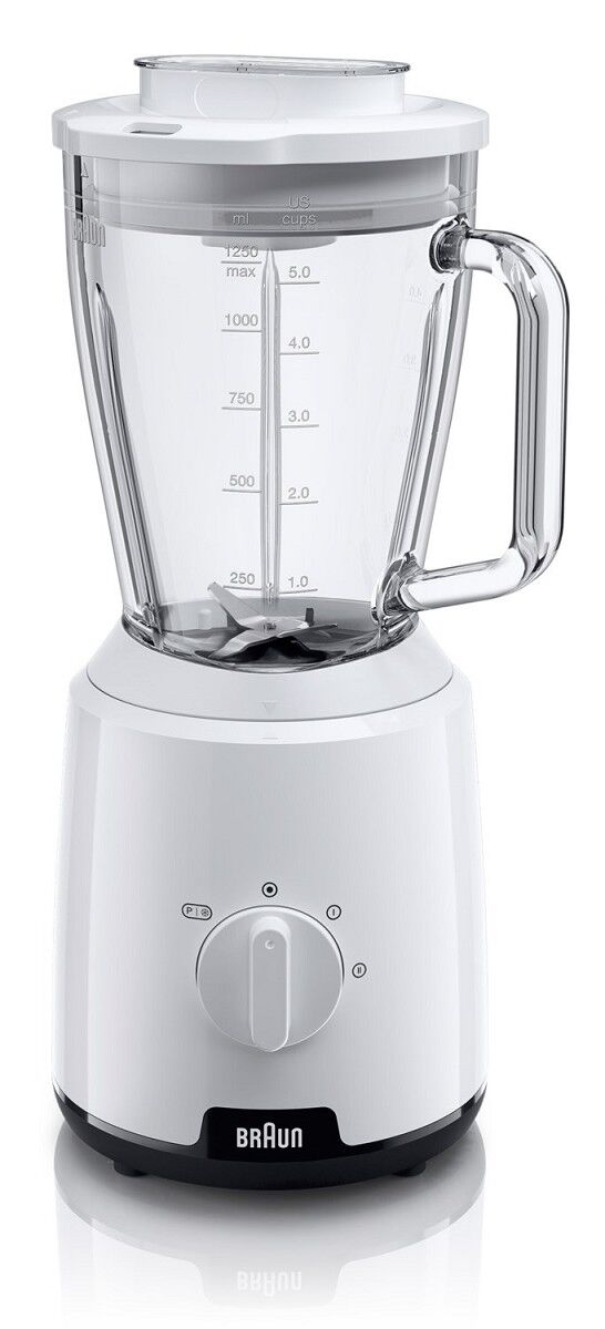 Mixt alle Arten von Lebensmitteln. Der dreieckige Mixbehälter sorgt dafür, dass die Zutaten schneller in den Mixbereich geleitet werden.
