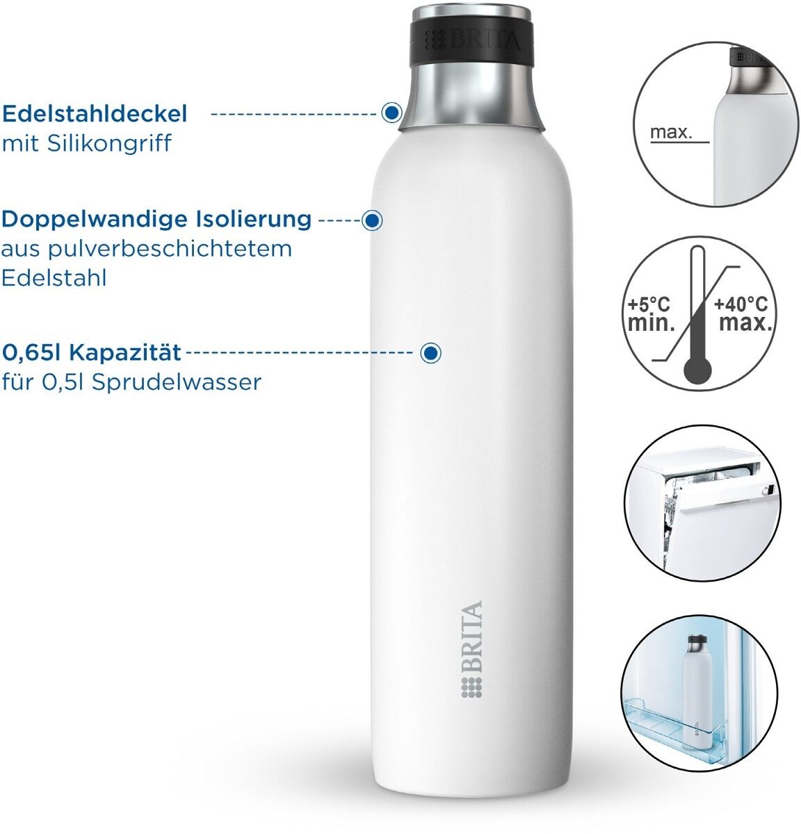 Brita sodaTRIO Edelstahlflasche klein (weiss)