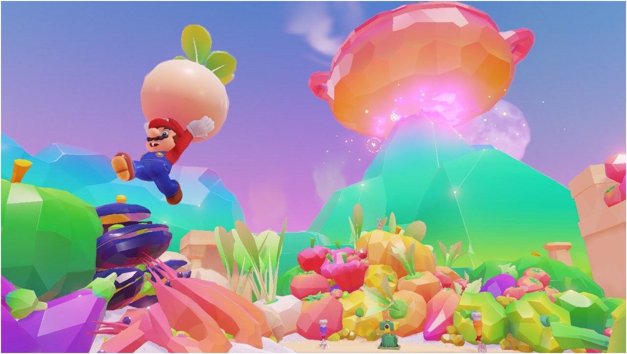 Marios neuer Freund Cappy bringt brandneue Tricks: Mit dem Capern etwa kann Mario alles mögliche kontrollieren – Gegenstände ebenso wie seine Widersacher.