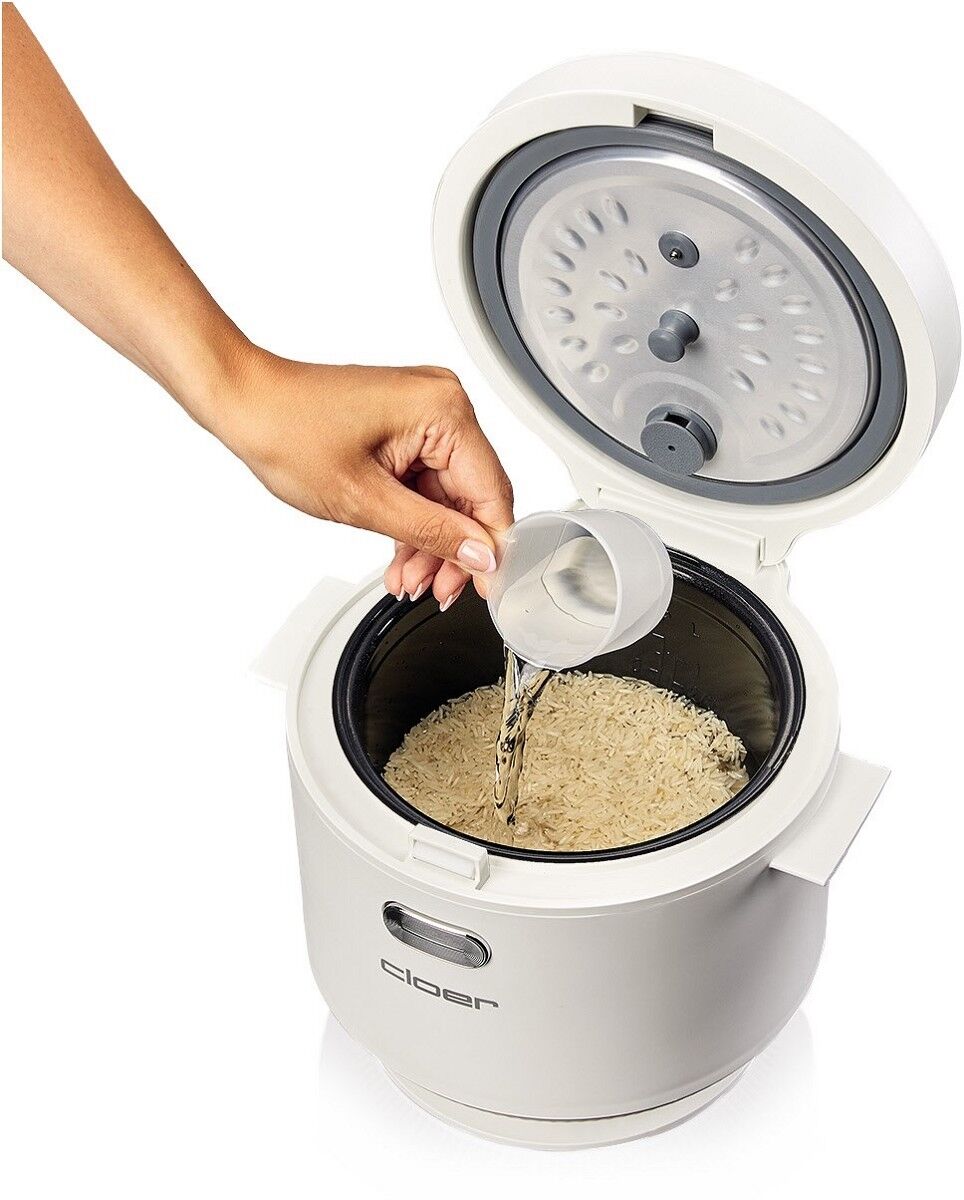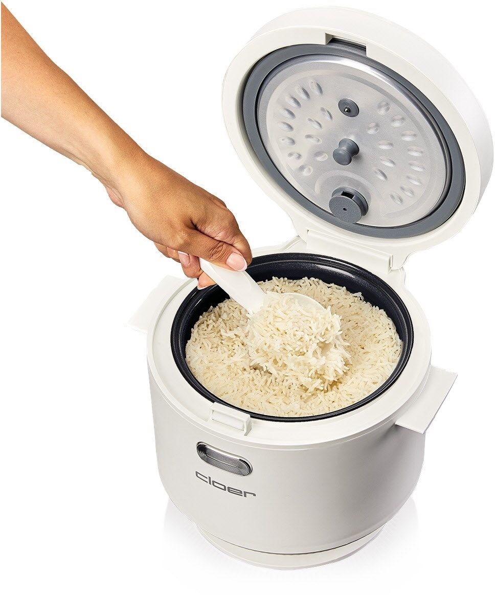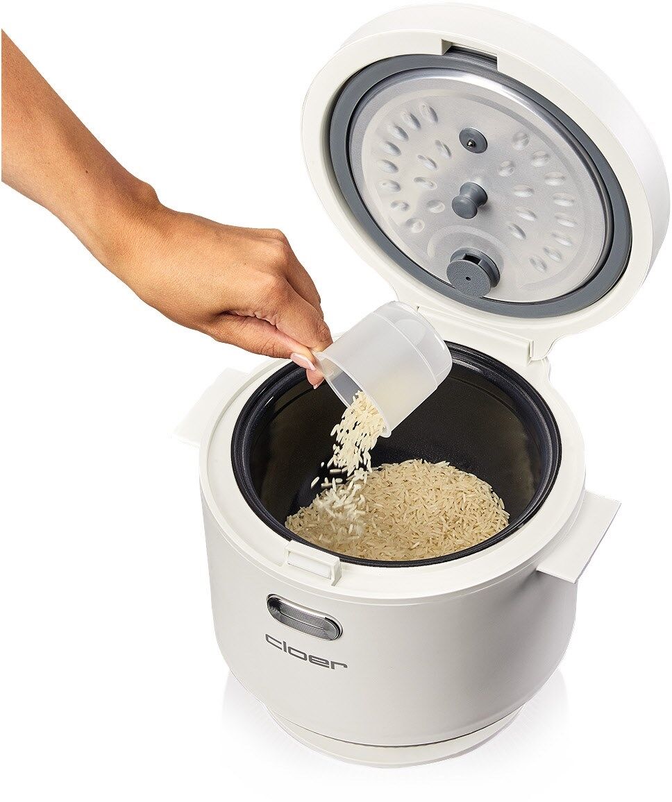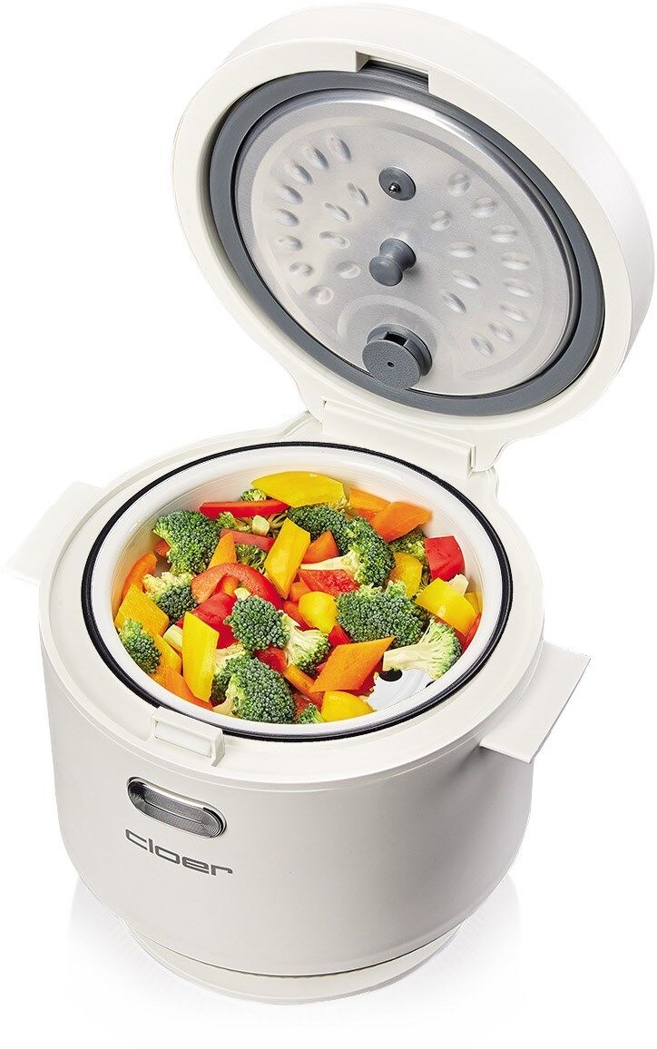 Der Cloer 6831 Reiskocher eignet sich für 1 bis 5 Portionen und ermöglicht neben Reis auch die Zubereitung von Suppen, Porridge oder gedünstetem Gemüse.