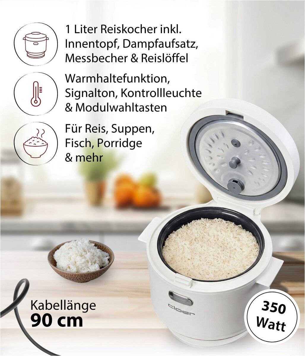 Neben klassischem Reis gelingen damit auch Suppen, Porridge, gedünstetes Gemüse oder Fisch, unterstützt durch den mitgelieferten Dampfaufsatz.