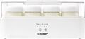 Zwölf Joghurtgläser mit je 150 ml Fassungsvermögen und weißen Kunststoffdeckeln ermöglichen die Herstellung mehrerer Portionen in einem Durchgang.