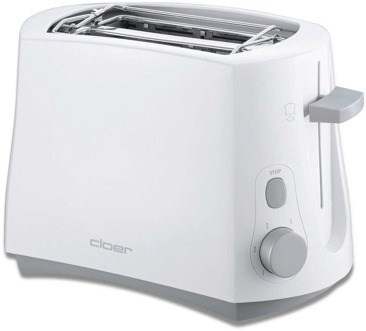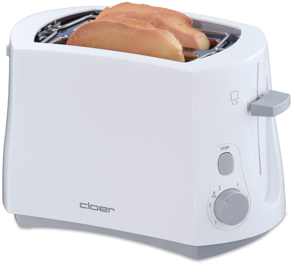 Cloer 331. Anzahl der Scheiben: 2 Scheibe(n), Produktfarbe: Weiß. Leistung: 825 W, AC Eingangsspannung: 230 V. Kabellänge: 0,97 m. Abmessungen (BxTxH): 170 x 280 x 180 mm