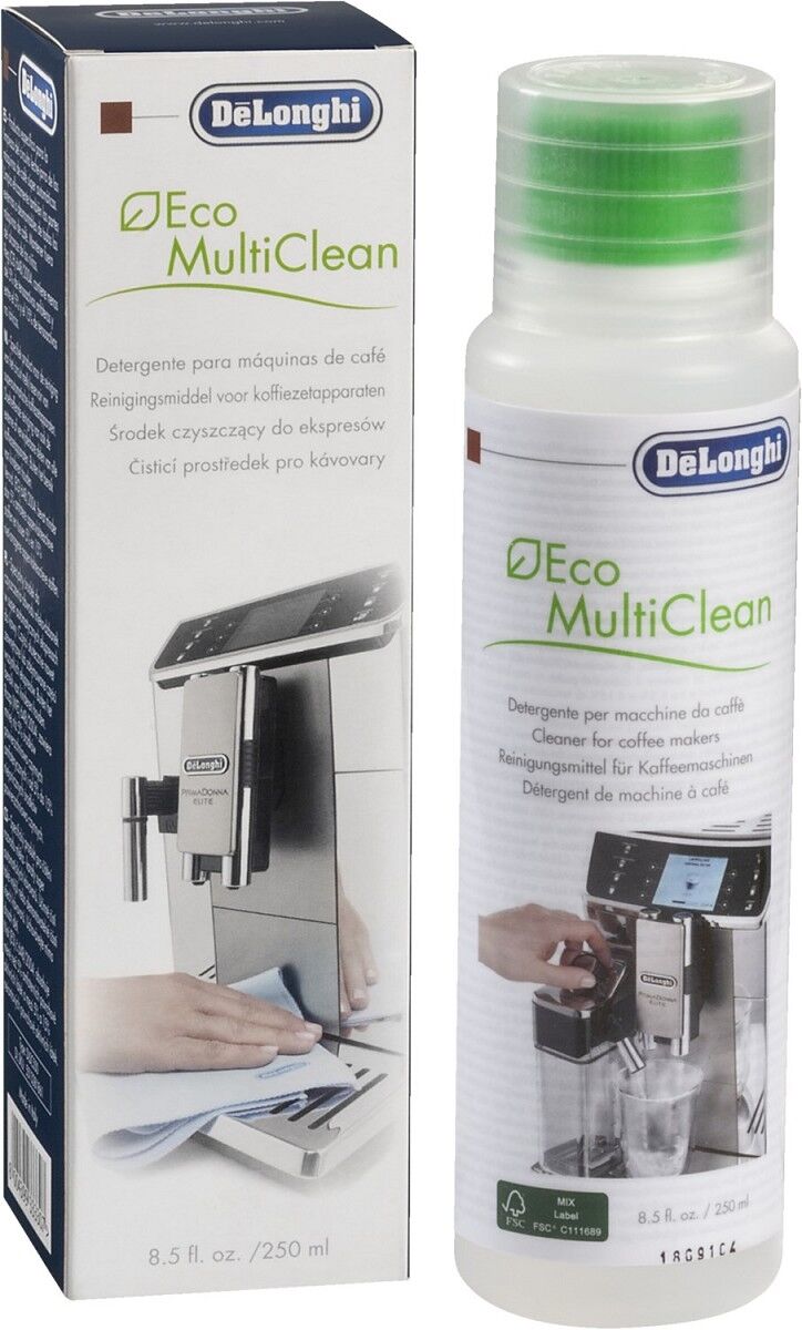 Eco MultiClean ist ein spezielles Reinigungsmittel zur Reinigung des Milchkaraffen-Kreislaufs der Kaffeevollautomaten. Außerdem reinigt es wirksam die Außenflächen oder abnehmbaren Teile aller Kaffeemaschinen.