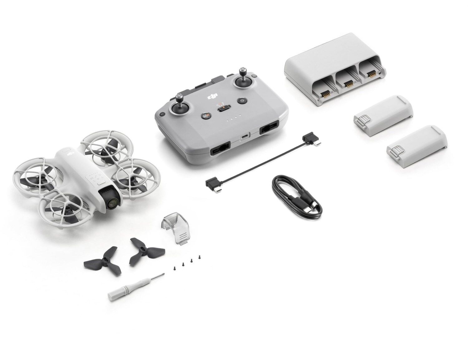 Die DJI Neo Fly More Combo enthält das Fluggerät, eine RC-N3 Fernsteuerung, drei Intelligent Batteries, eine Zweiwege-Ladestation und mehr. Sie bietet eine überlegene Flugsteuerung und Kamerabedienung für alltägliche bis präzise Luftaufnahmen.