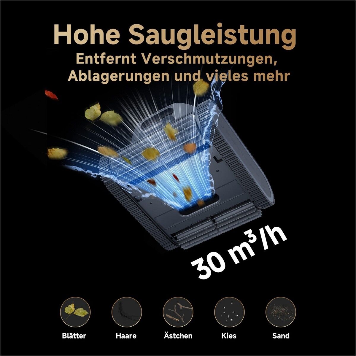 - Beispiellose 30m³/h Saugleistung