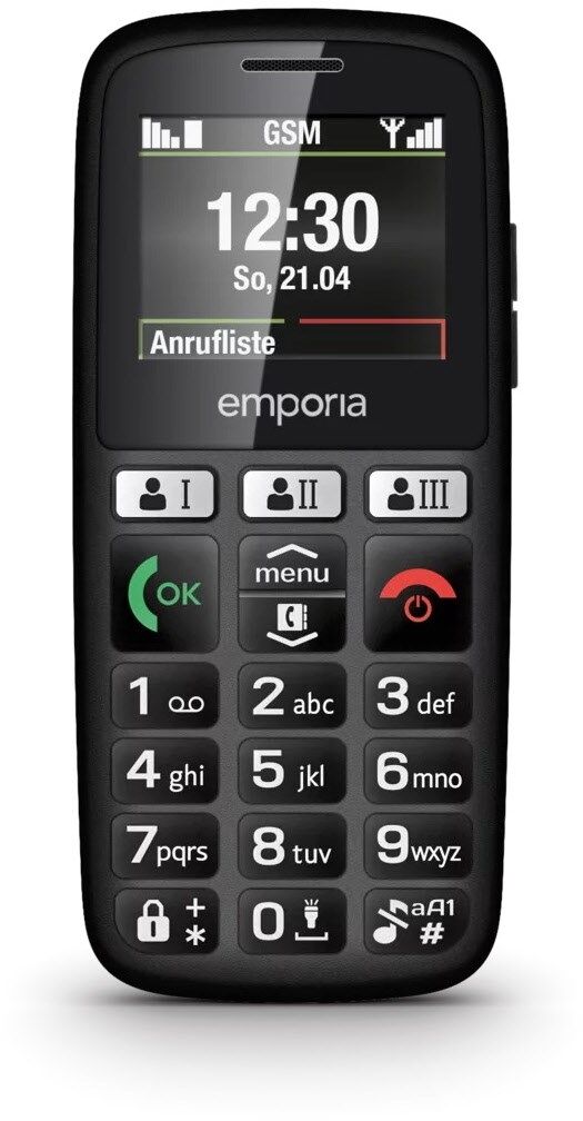 Notruftaste mit bis zu fünf vordefinierten Kontakten, Notfall-SMS und Alarmsignal