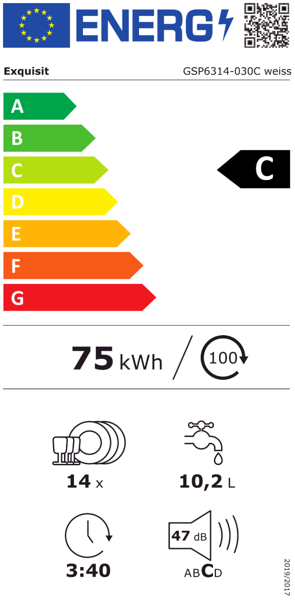 Die Energieeffizienzklasse C sorgt dabei für einen geringen Stromverbrauch, sodass auch ein bewusster Umgang mit Ressourcen zum Selbstverständnis wird. Mit einem Energieverbrauch von lediglich 75 kWh auf 100 Spülzyklen sowie einem effizienten Wasserverbrauch von 10,2 Litern pro Zyklus bietet das Gerät nachhaltigen Betrieb bei gleichzeitig starker Leistung.