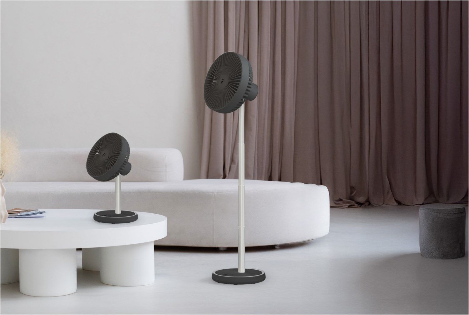 Der kabellose und kompakte Tisch- und Standventilator ist einfach über USB Type-C Verbindung aufzuladen. Flexibel einsetzbar für eine angenehme Abkühlung überall und jeder Zeit.