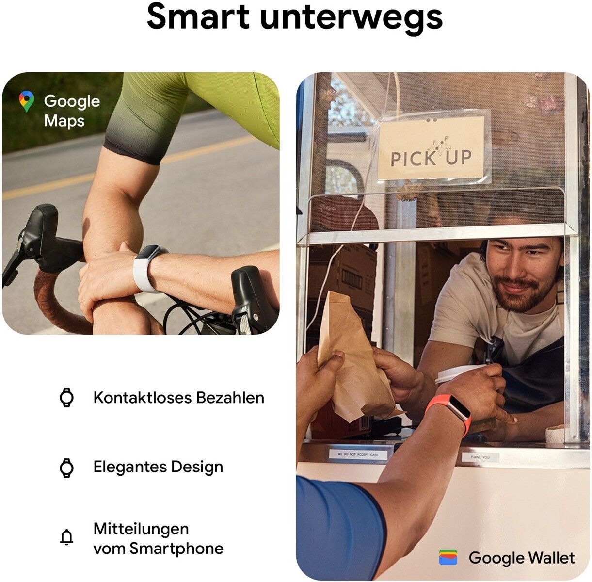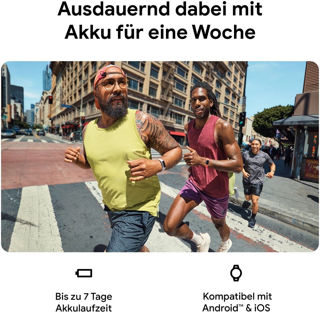 Auf neuen Laufstrecken zeigt dir die detaillierte Routenführung von Google Maps den Weg. Mit Google Wallet bezahlst du ganz einfach kontaktlos*. Und mit 7 Tagen Akkulaufzeit hält dich wirklich nichts mehr auf.