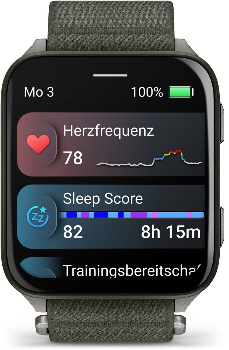 Erfahre dank umfangreicher Fitness- und Gesundheitsfunktionen mehr über deinen Körper, darunter die erweiterte Schlafanalyse mit HFV Status, Body Battery™ Energiereserven, Pulse Ox u.v.m.2. Sofort nach dem Aufwachen erhältst du im Morgenbericht eine Übersicht über deinen Schlaf, deine Erholung, den täglichen Kalender u.v.m.