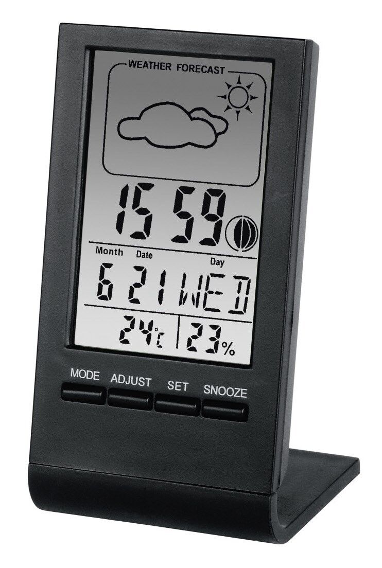 Für digitale Anzeige von Temperatur, Luftfeuchtigkeit, Uhrzeit, Wochentag, Datum