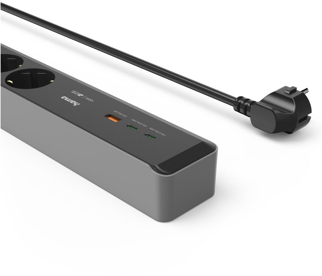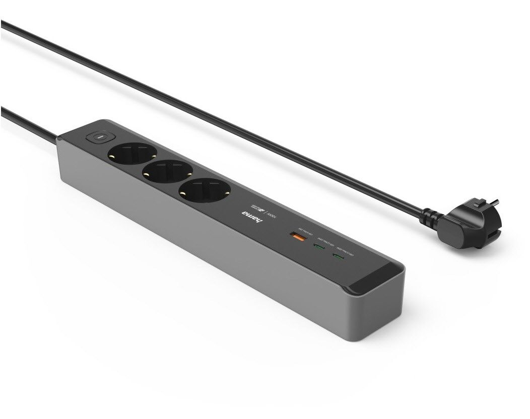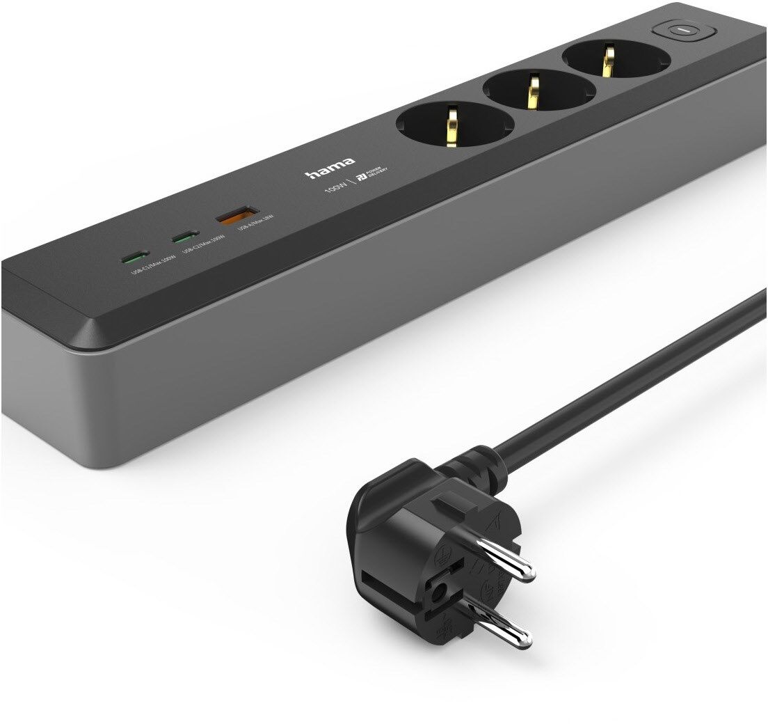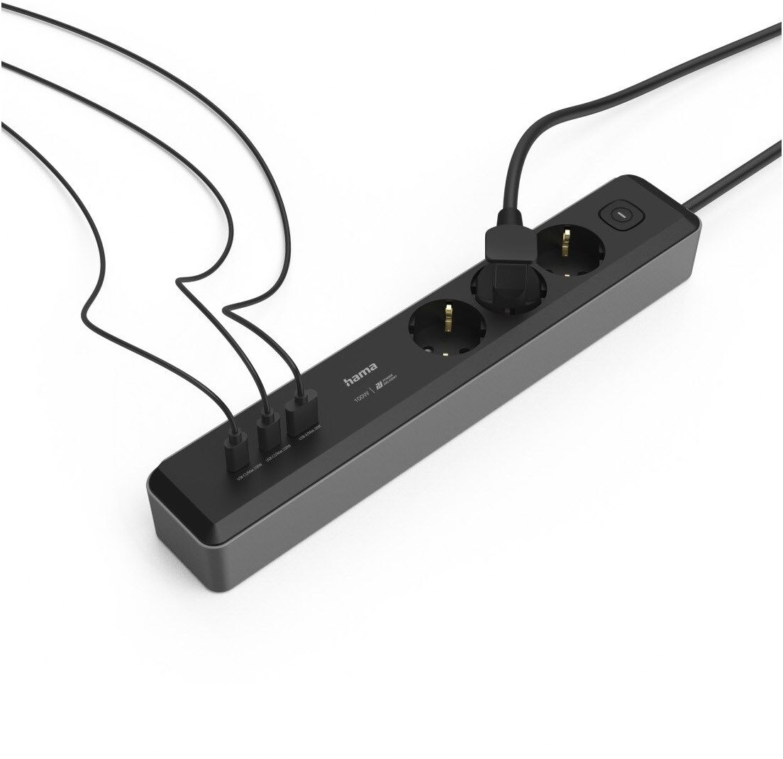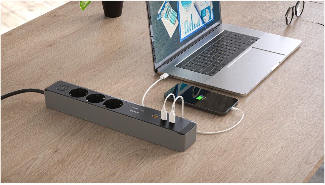 Ein starker Mehrfachstecker für alle: Die Steckdosenleiste mit 3 Steckdosen und 3 USB-Buchsen versorgt alle Ihre Endgeräte mit Energie.