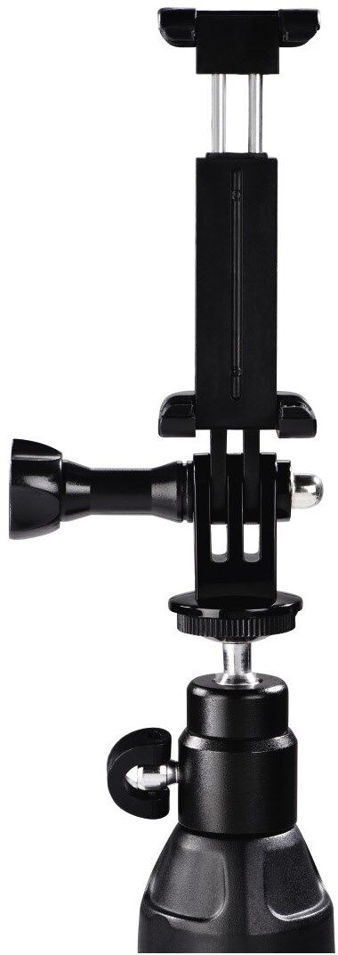 Tischstativ:. Erhöhte Standfestigkeit durch spreizbare Stativbeine (z.B. bei Einsatz des Teleskopstabes) Gummifüße für rutschfesten, sicheren Stand. Höhe max. mit Teleskopstab und Kugelkopf: 86 cm. Gewicht: 185 g