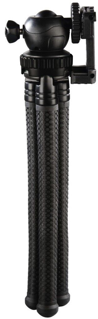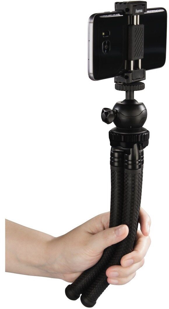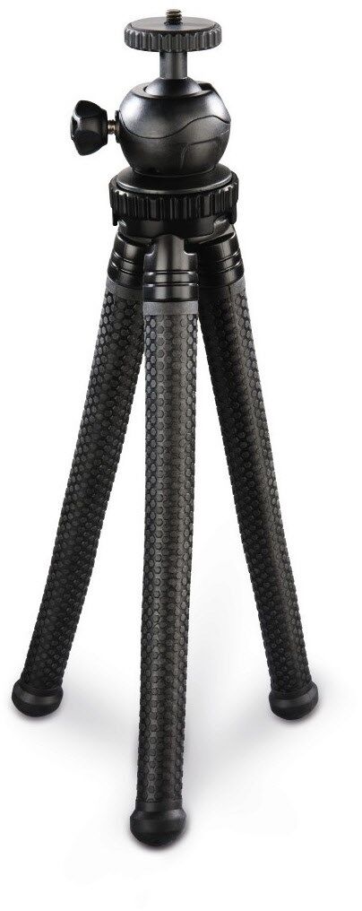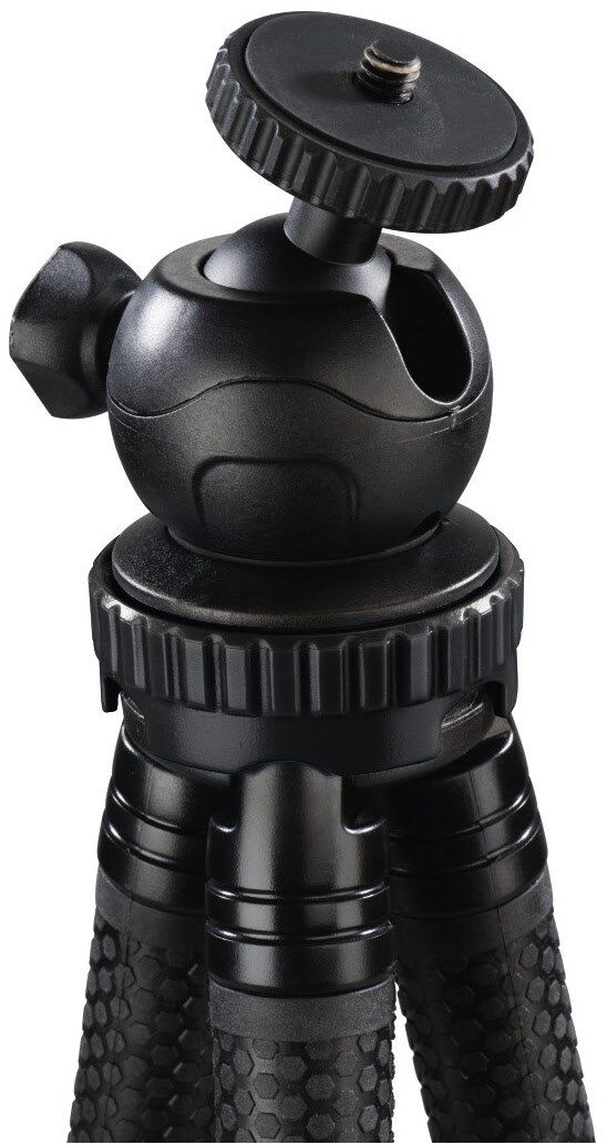 Stufenlos, einzeln biegbare Stativbeine: somit an viele Untergründe und Objekte anpassbar und als Einbeinstativ verwendbar