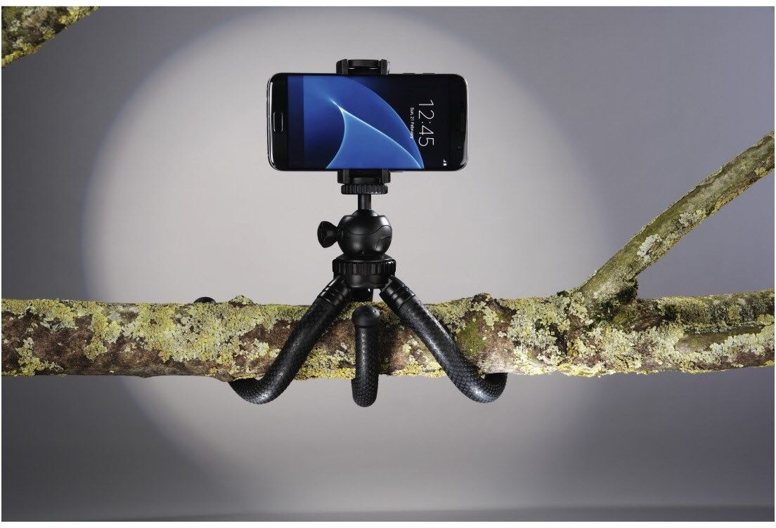 Platzsparend: Smartphone-Halterung kann eingeklappt werden. Smartphone-Halterung abnehmbar und für andere Stative verwendbar