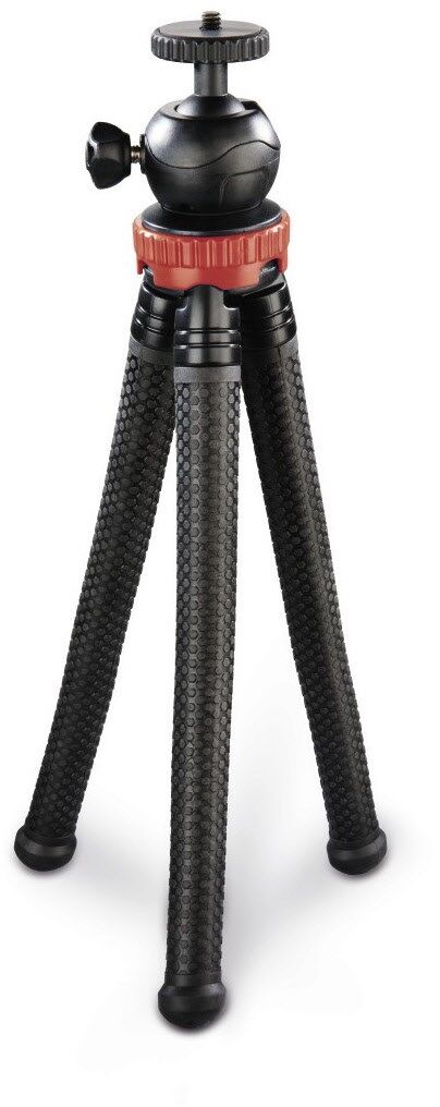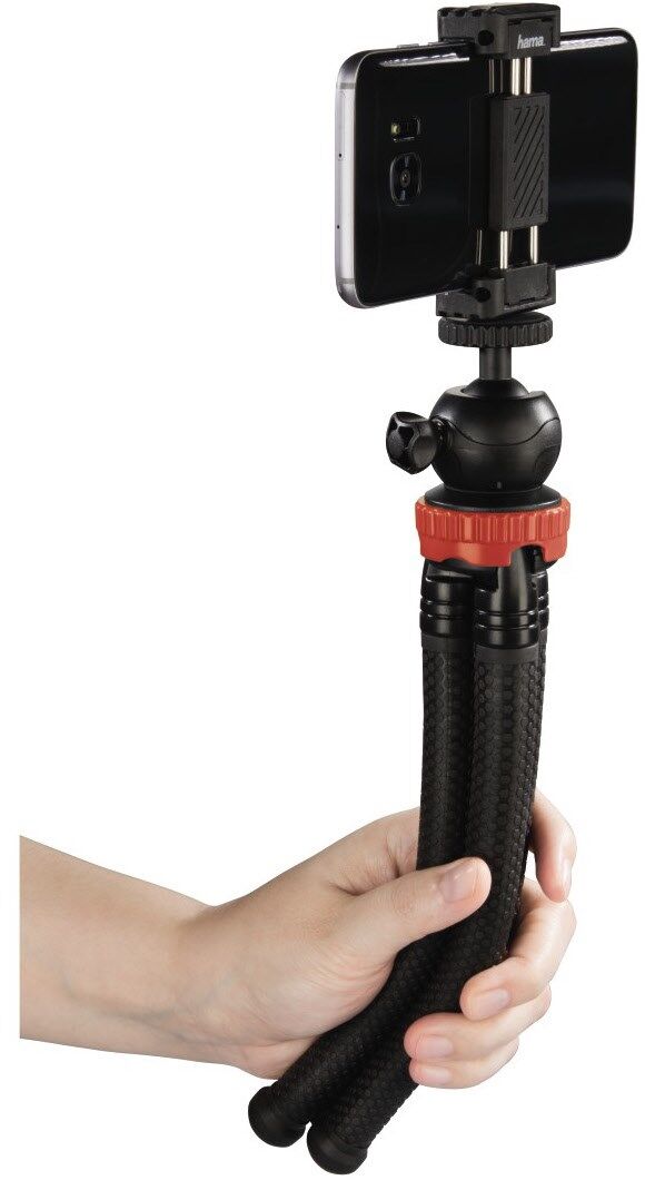 Stufenlos, einzeln biegbare Stativbeine: somit an viele Untergründe und Objekte anpassbar und als Einbeinstativ verwendbar