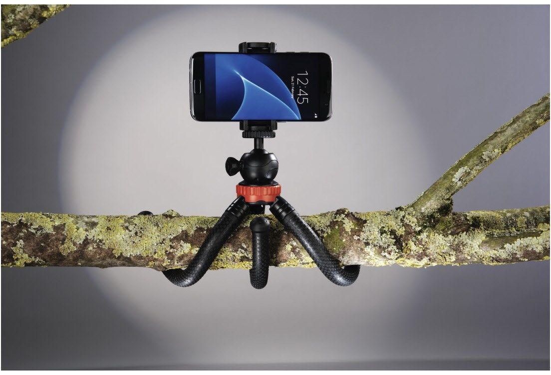 Platzsparend: Smartphone-Halterung kann eingeklappt werden. Smartphone-Halterung abnehmbar und für andere Stative verwendbar