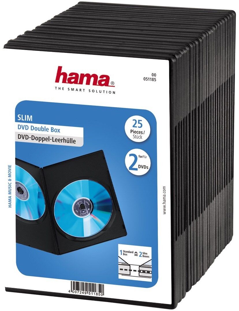 Hama DVD Slim Double-Box 25, Black. CD-Kapazität: 2 Disks, Produktfarbe: Schwarz