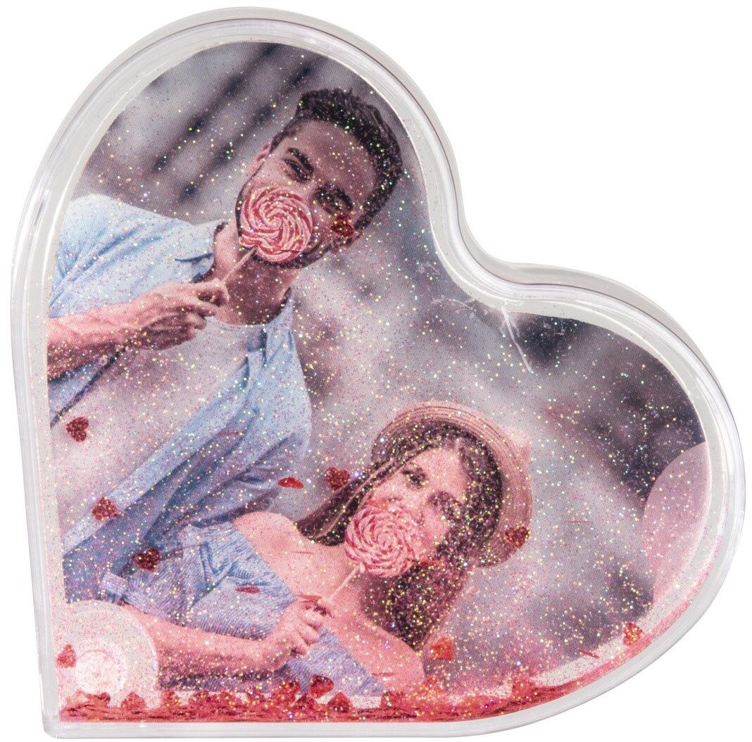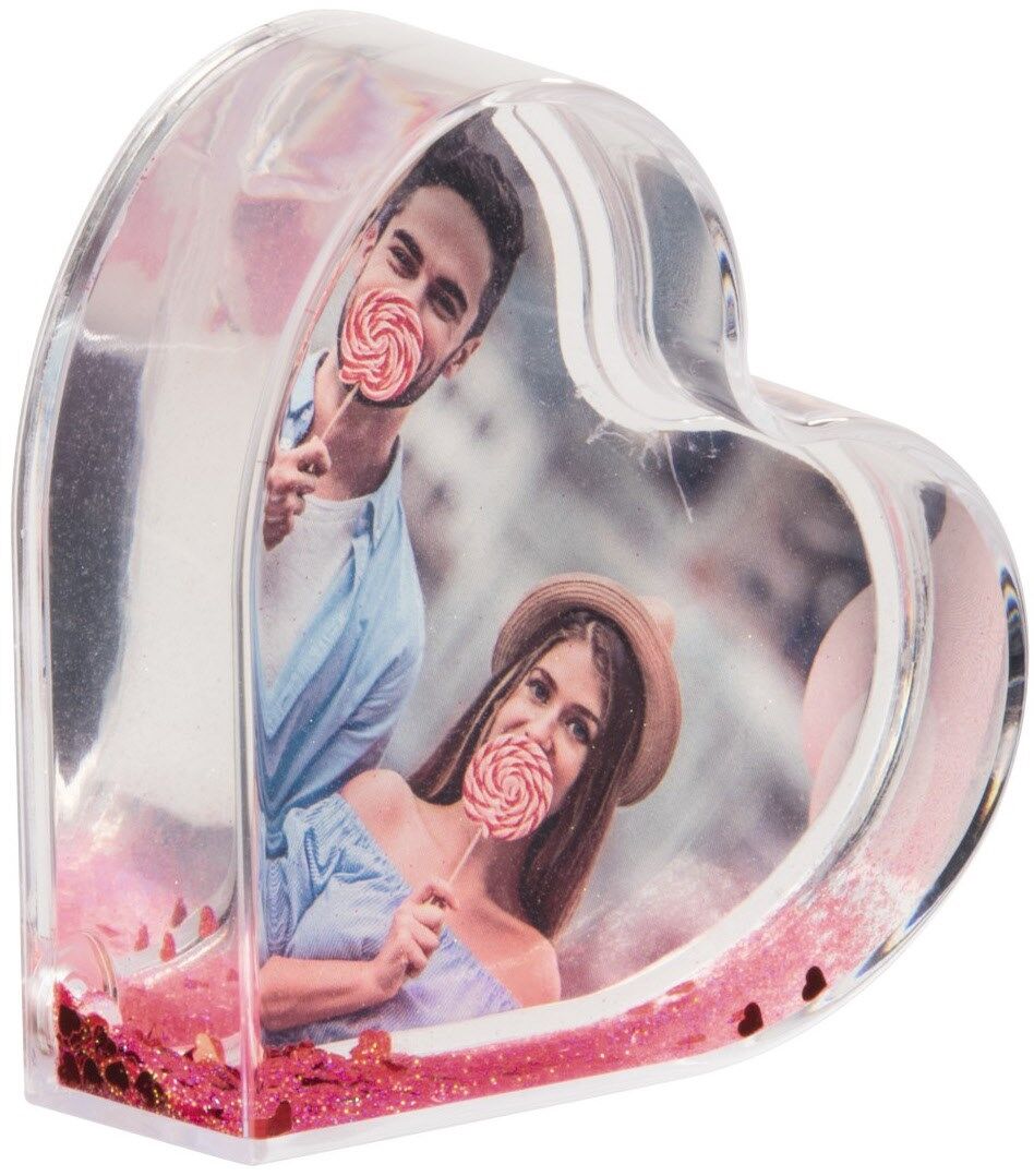 Bilderrahmen für die Liebsten mit Fotokugel-Effekt: gefüllt mit Wasser und roten Glitter-Herzen