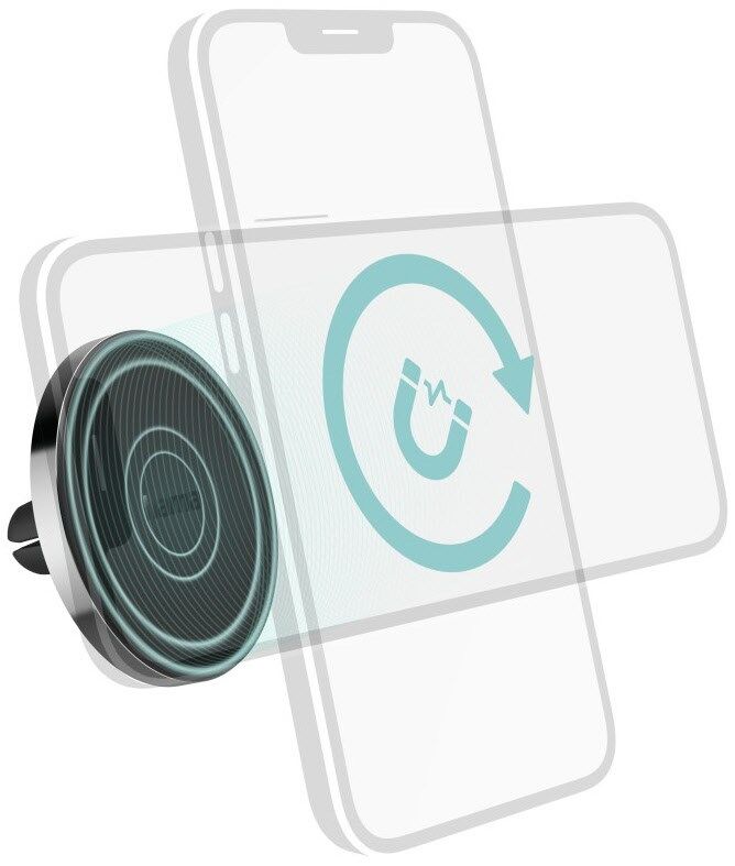 Kompakte Magnet-Halterung zur sicheren Befestigung eines Smartphones am Lüftungsgitter eines Fahrzeugs